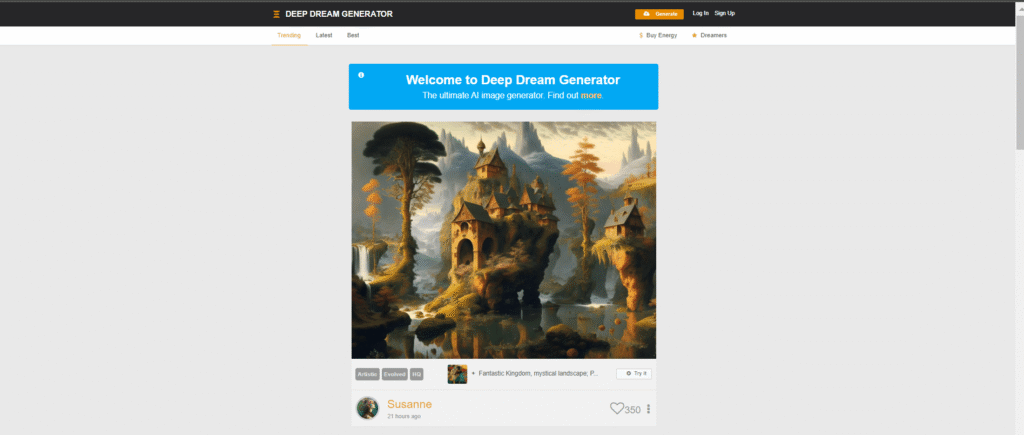 Deep Dream es otro generador de imágenes de arte de IA que permite crear imágenes impresionantes y hermosas en cuestión de minutos.